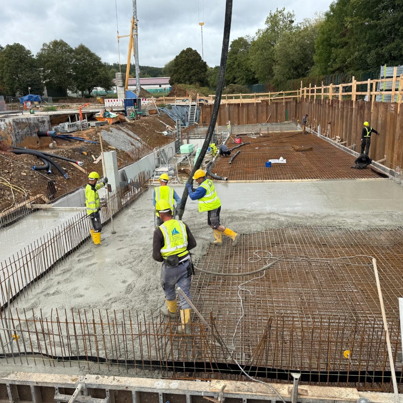 Unsere Leistungen umfassen Schalungs-, Bewehrungs- und Betonarbeiten an Technikgebäuden, Becken und Fundamenten.